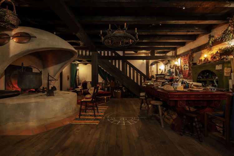 走進「魔女之谷」園區,沿著圍牆小徑往前,迎面而來的正是「霍爾的移動城堡」,主建築高達 20 公尺(約 7 層樓高),延續電影場景,不只還原外部建築堆疊的量體空間,每隔幾個小時,煙囪就會冒出煙霧。仔細一看,霍爾的移動城堡的立面結構充滿細節,也會發現,它如電影般,正在緩緩地「移動」。