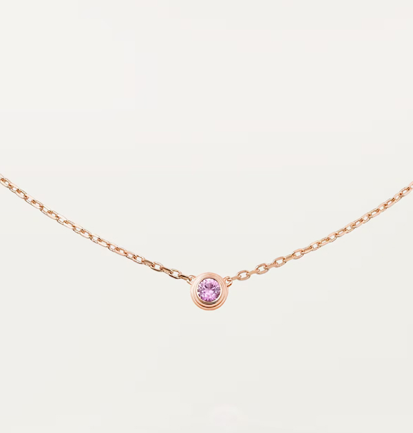 「Cartier d'Amour」系列,玫瑰金鑲嵌粉紅色藍寶石項鍊,NT$ 34.200。