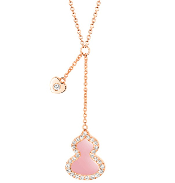 「Wulu」系列,玫瑰金鑲嵌粉紅蛋白石及鑽石項鍊,價格店洽。