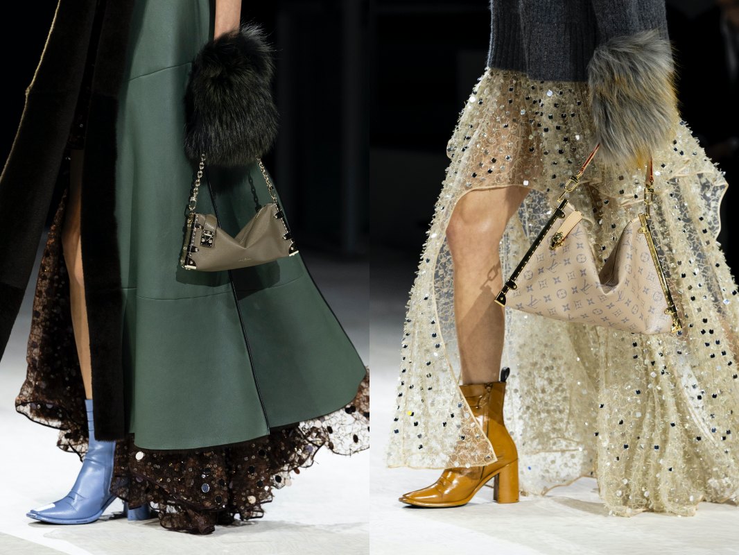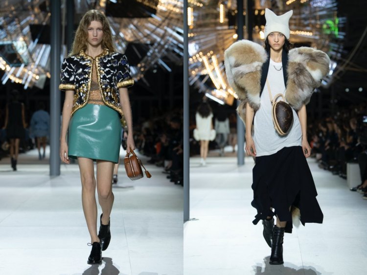材質的碰撞,亦是 Nicolas Ghesquière 拿手好菜,除了羽毛與科技面料的外套做搭配外,還能看見繁複的刺繡上衣,與都會感的皮革窄裙做組合,而皮草與 oversize 棉質上衣無違和的混搭,更是展現出設計師的巧思,總能將不相干的兩個元素碰裝出精采的化學變化,讓人不得不配服 Nicolas Ghesquière 獨到的眼光。