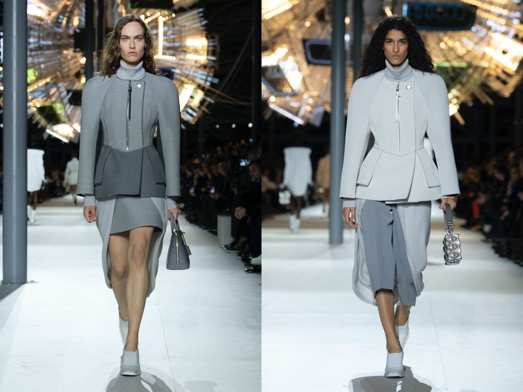 過去,Nicolas Ghesquière 的作品總用打破比例的廓形,加上繁複浪漫的元素與未來感的面料,創造出獨具風格的美感,但在本季他拋開過去的廓形,他用更為精準腰線,或是落地裙裝以及開衩的設計,讓女性回歸到更完美的比例,而最具代表性的西裝設計,在本場秀上也以更誇張的腰臀比例呈現,讓女性在穿著上更能得心應手。