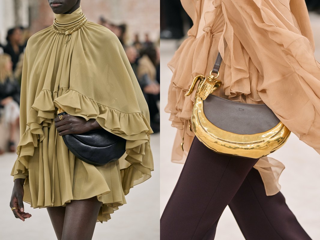 傳奇設計師 Karl Lagerfeld 於 90 年代操刀品牌時,曾用手寫字的設計元素,讓 Chloé 擁有更高的識別度,而在本季的設計上,Chemena Kamali 用了全新手寫字致敬其經典符碼,並將其設計化身為腰間時髦的裝飾腰鍊,細膩的金屬質地,宛如首飾的設計,成為多套服裝的亮點,其單品亦推出更容易搭配的小尺寸款式,具有識別度的設計已經能預知會是下一個秒殺單品。