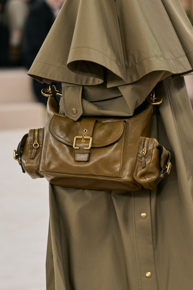 近期「超大包」是近期時尚圈最重要的趨勢,而在本季的秀場上 Chloé 亦打造了一款名為如其名的「Oversize Bag」!包型上以半月包為主要廓形,搭配上超誇張的尺寸,增添了服裝整體的造型感。
