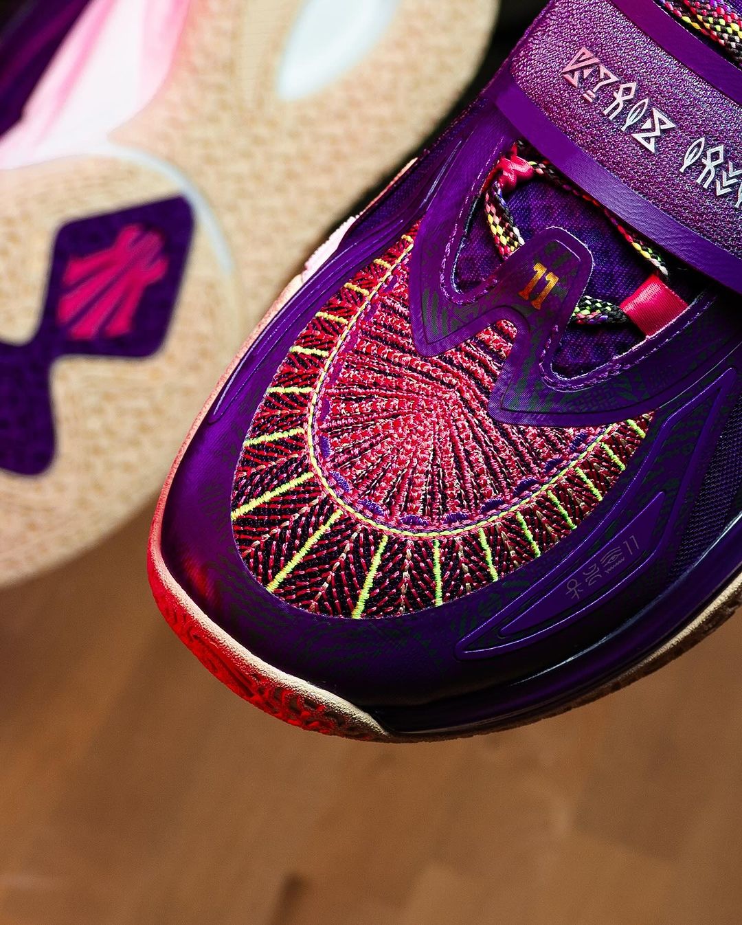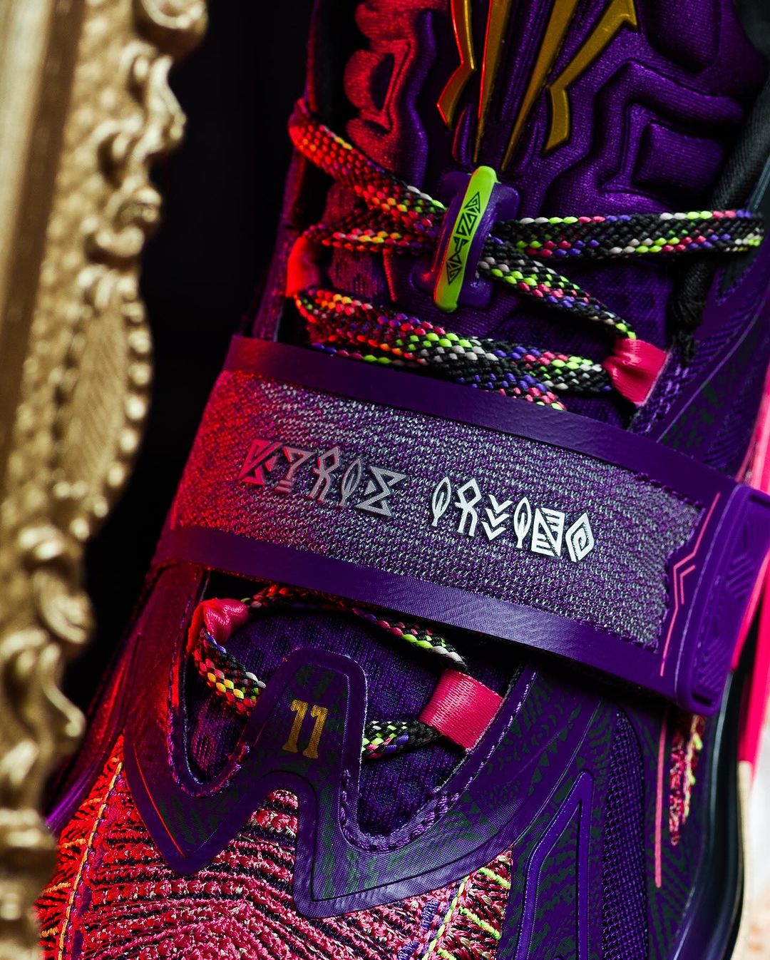 本次 ANTA KAI 1 “Artist on Court” 以神秘的紫色為主,輔以桃紅色點綴;細節部分注入 Kyrie Irving 的信仰與民族風格,整體相當吸睛。