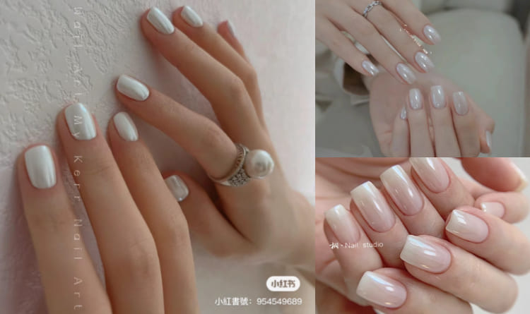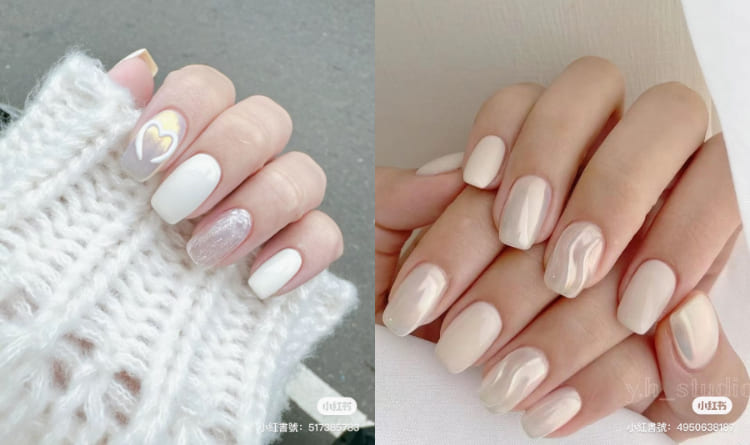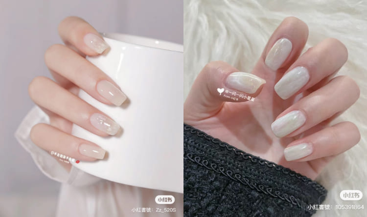 美甲款式多變,但這兩季更追求內斂的內在美!像是這款透膚的乳白色,好似沒什麼亮點,實則擦上指尖卻很顯手白、顯手指修長;另外,近兩季也有著許多石英石紋理、羽毛紋理的白色美甲款式,都是耐看且百搭的人氣款。