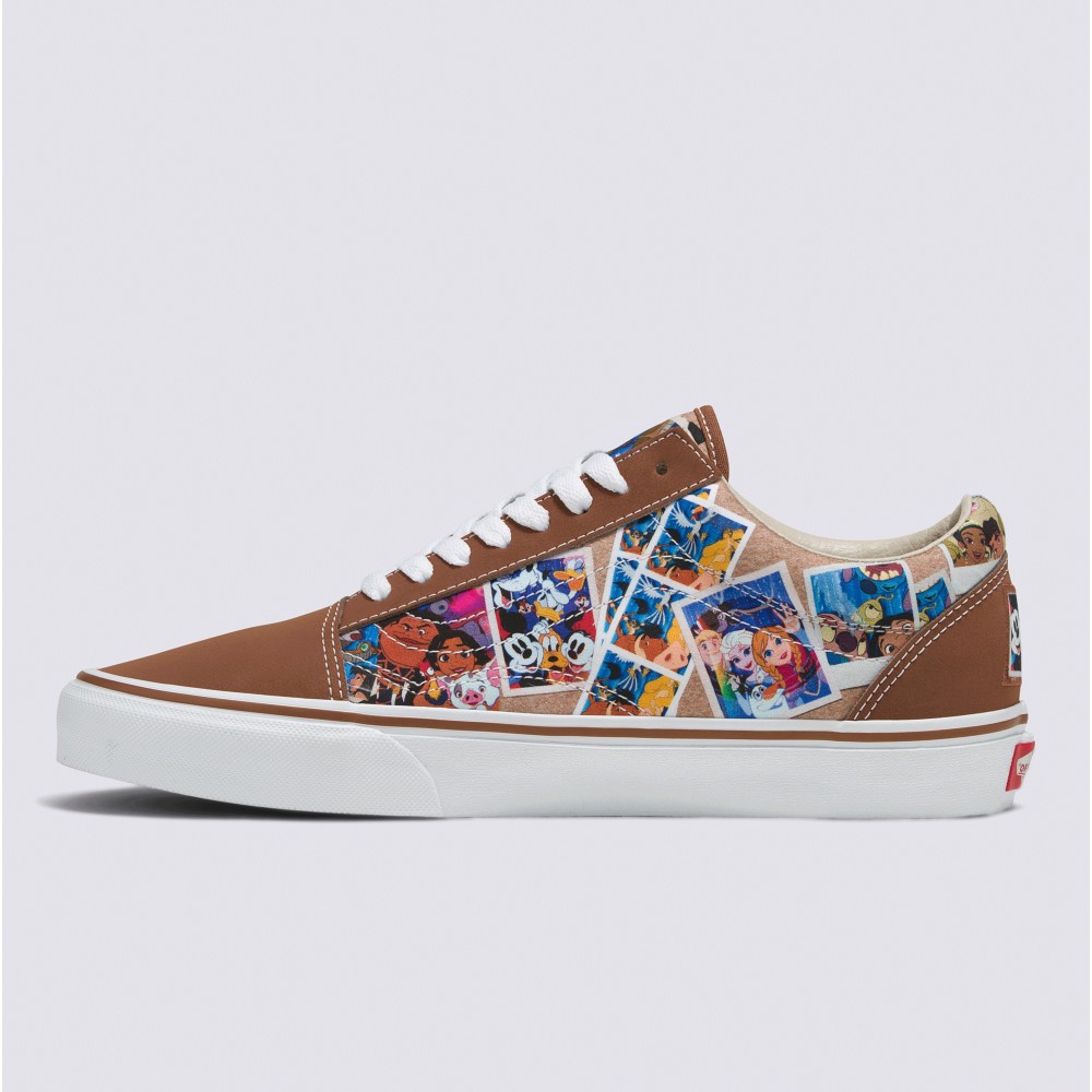 迪士尼 x Vans 聯名系列,將童年回憶穿出門!這雙鞋上有米奇、米妮、布魯托...超多迪士尼經典卡通圖案,滿滿的童趣氛圍。帆布數碼印花回顧迪士尼家族,穿上它展現獨特的時尚風采。Vans Old Skool主色調是秋冬好搭配的咖啡色,套上素T、大地色系的圍巾配件,簡直不要太時髦!