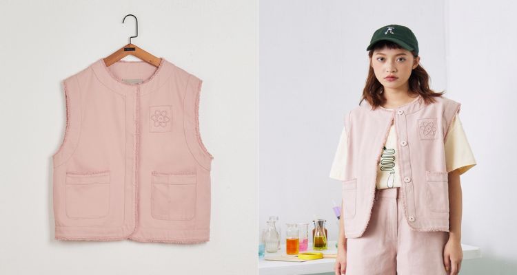 近年,工業風潮流也逐漸在女孩身上流行起來,而Gozo將工業風結合柔和粉,雖保留工業風的特色口袋設計,但在側邊縫製流蘇織帶,讓這件背心增添少女感。裡面搭件素T就可以出門,完全就是懶人穿搭必備!