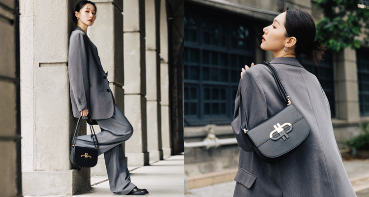 對自己穿搭向來有獨特見解的模特兒Amber Chiu,採以Tone On Tone色系型塑俐落風格,將時下流行的「Clean Fit」和「格雷灰」融合在套裝中,透過「Icon 皮革單肩包」營造出色調和材質層次,搭配同系列的灰黑色樂福鞋,為整體氛圍定調。微尖頭鞋型和鞋底剛剛好的高度,是Pedro 此系列中的熱銷逸品,體現獨具一格的高級時尚感,也兼具女性優雅柔媚氣質。