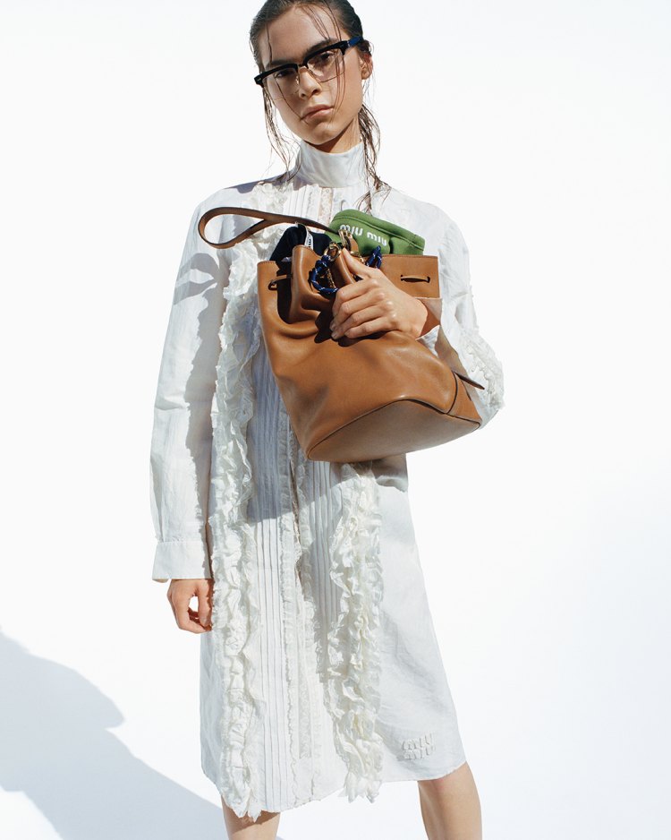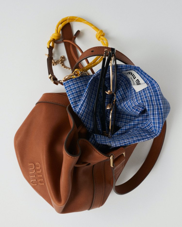 隨著新店開張,新一季的單品亦順勢上架!在今年春夏 Miu Miu 以輕盈的皮質面料打造了一款吸睛的水桶包,在尺寸上有小型及大型可供選擇,顏色上則有焦糖與純黑兩種配色,百搭又不失造型感的設計,絕對成為本季最受歡迎的包款。