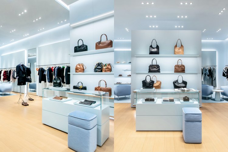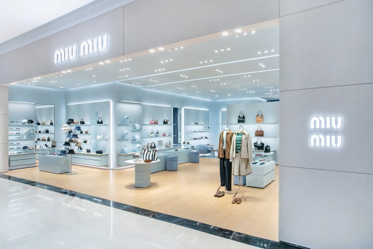 眾家精品搶著插旗的高雄漢神巨蛋,是當今南台灣奢侈品市場的指標,對於聲勢不斷看漲的 Miu Miu 來說,當然不能錯過這著店點,品牌全新店舖於昨日正式開張,整體外觀以帶有 Miu Miu 標誌的優雅象牙白色萊姆石為主色調,清新的天藍色面料包覆內部牆面和展示層板,搭配淡色系的橡木地板,明亮的空間讓顧客能更輕鬆的沈浸其中。