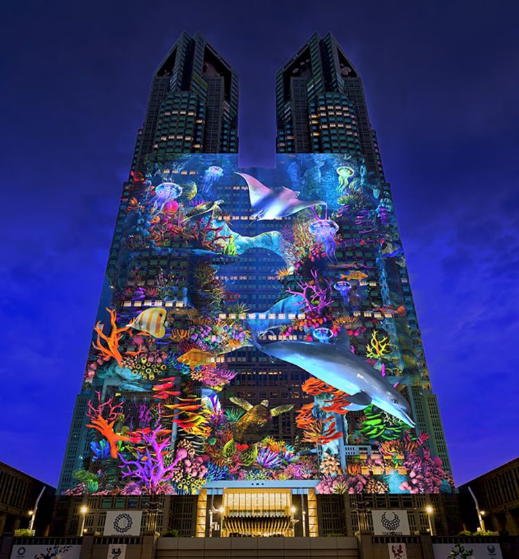 作為日本東京熱門地標之一,東京都廳一直以來免費開放給當地人或觀光客入場,在高達 202 公尺的展望室裡,眺望東京的所有建築,夜晚還可以感受整座城市的夜景。不同於過去建築量體呈現的形式,即日起夜晚的東京都廳成為美麗的光影畫布,同時也將申請「最大的建築投影展覽」金氏世界紀錄。