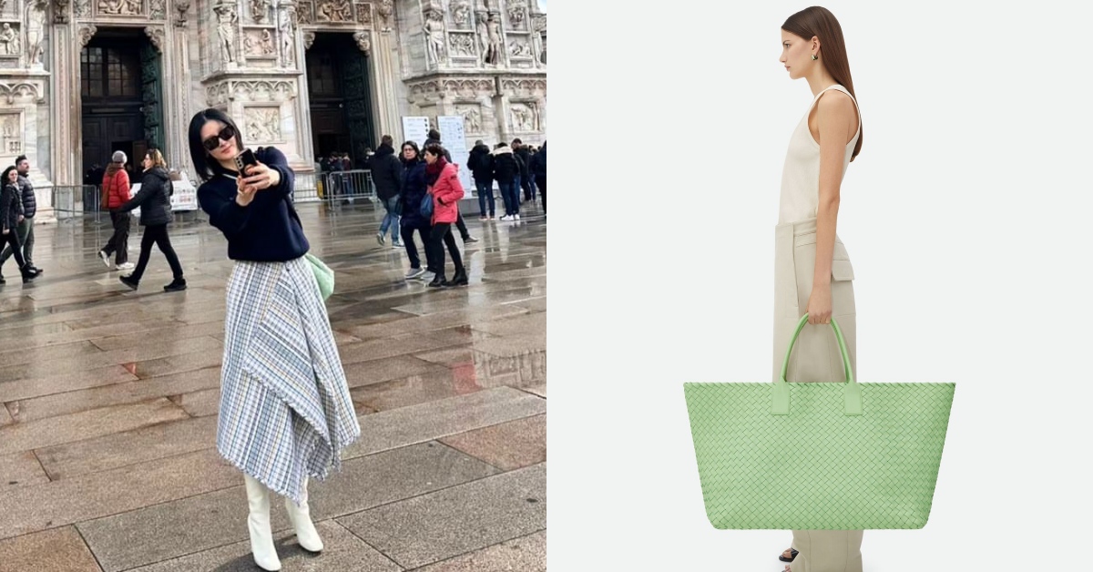 「Andiamo」這款包一推出,因其實用的托特包型,可以調節的“兩用”背帶,全面以BV最經典的皮革編織,加上本季重點色薄荷綠,也難怪一問世就讓許多重量級女星愛上,近期韓國女星李英愛也在穿搭中曬這款!(價格:NT$147,000)