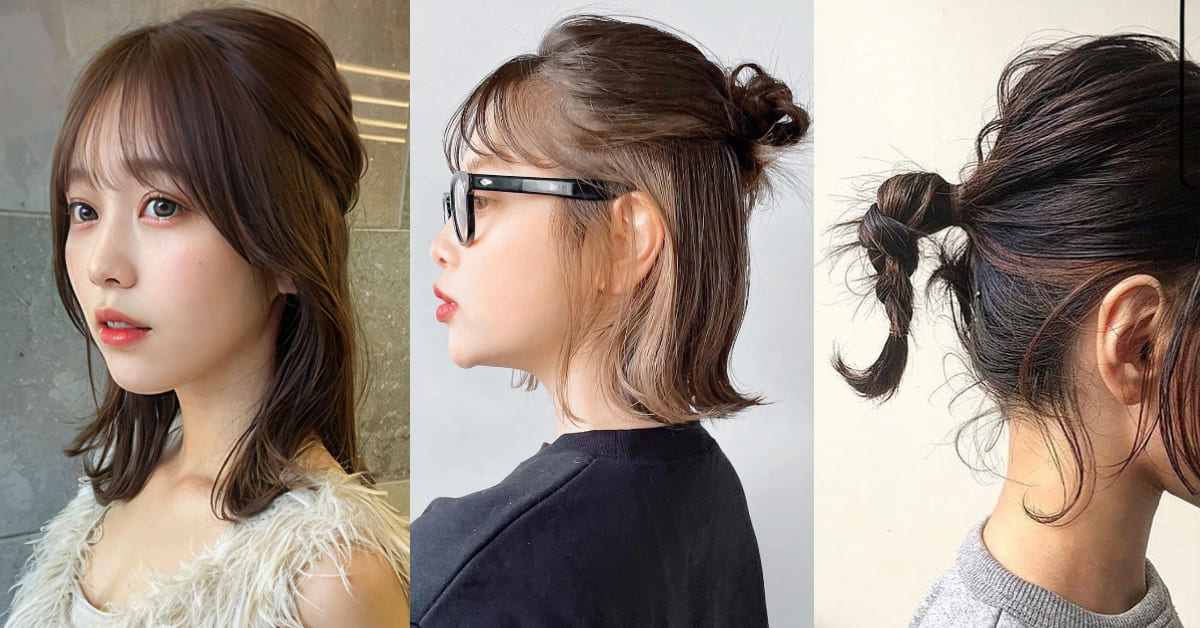 短髮、中短髮面臨過渡期時,總會連帶而來厚重、層次雜亂難整理的困擾,這時能減輕視覺分量感的半頭是個好選擇!不過除了直接紮緊的基礎半公主頭之外,溫柔女孩也很推薦試試抓取頭頂三分之一份量的髮絲,保留髮根的鬆軟、蓬鬆度做造型,更能提升髮型後腦杓的圓潤感喔!