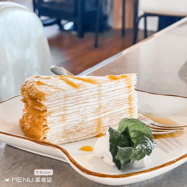 由廢棄軍營改建而成,外觀為純白色的建築,室內則有整面落地窗的設計,提供輕食、甜點、飲品,特別推薦包著地瓜內餡的黃金泡芙。