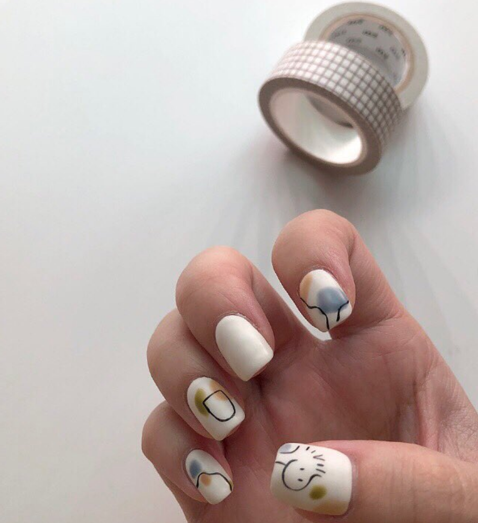 比起亮面的光療,霧面的色料顯得更成熟、有個性,搭配可愛的線條或塗鴉並不會讓整體看起來太幼稚,反而提升了手部的質感與活潑度,不只學生適合,上班族也可以大膽嘗試這種美甲風格。