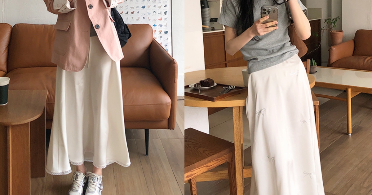 這款看似簡單的白色緞面裙其實細節感滿滿,腰部採用鏤空的鬆緊設計,減輕腹部壓力,脫下後也不會勒出一條難看紋路,裙面上方印有水鑽感裝飾的蝴蝶結圖案,整體造型更加畫龍點睛,緞面材質本身就十分涼爽輕盈,很適合春夏,穿搭方面如果是日常休閒,簡單搭配T-shirt就很好看,若是需要稍微正式一點的場合,可以搭配春夏的西裝外套與包頭根鞋,推薦給想要一件裙子就能應付各種場合的你!