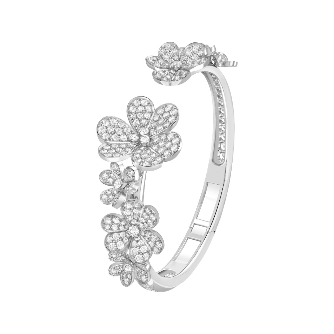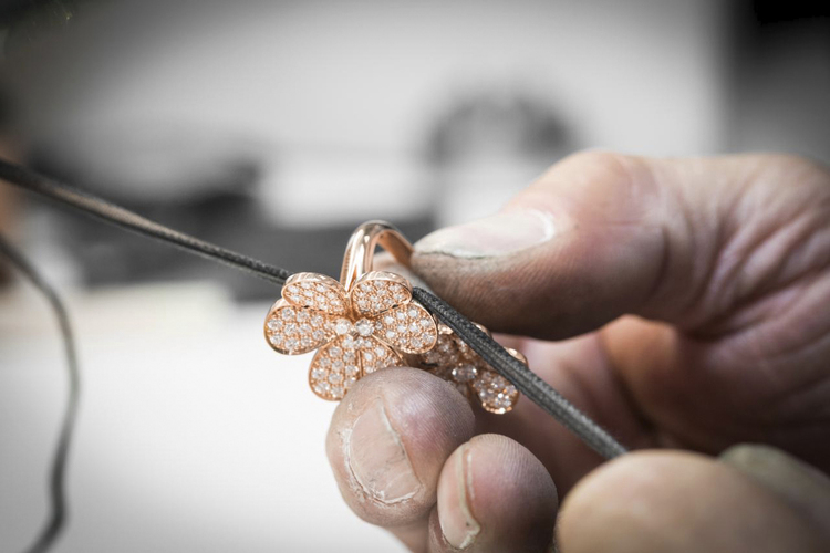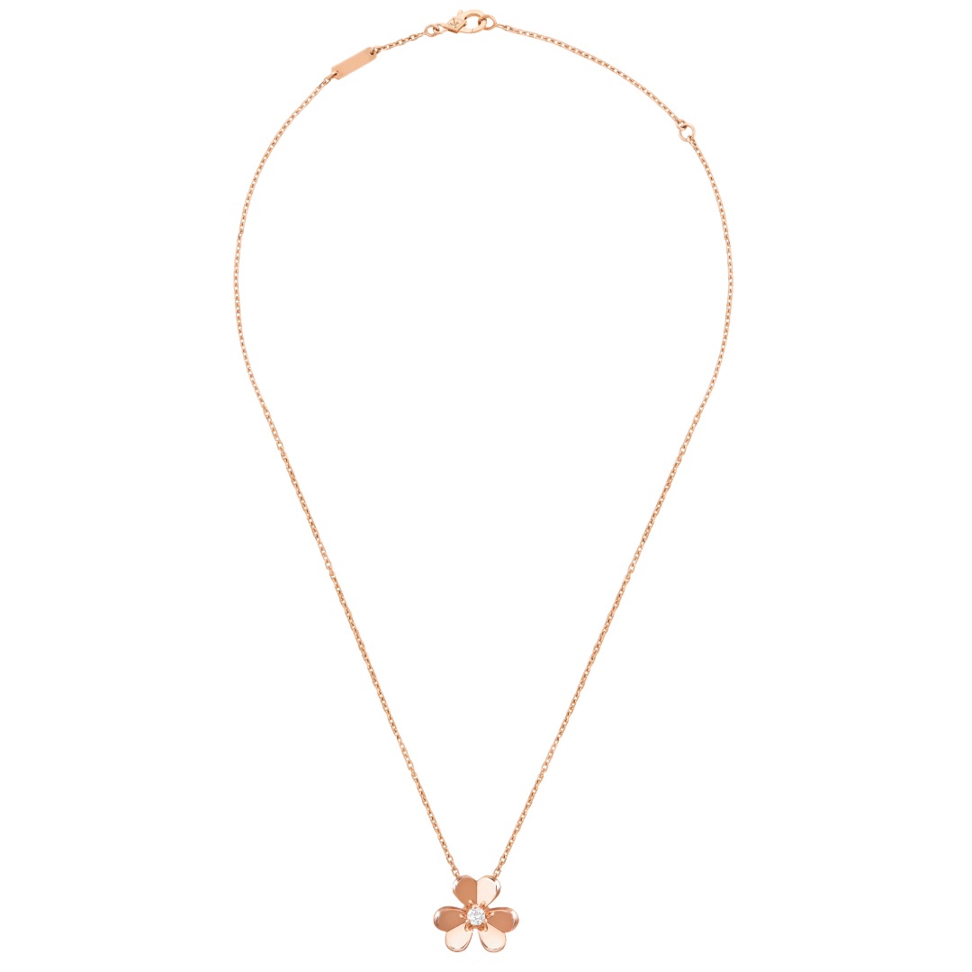 Frivole系列傳承著世家百年歷史的卓越傳統,融會了多種講究工藝技術,淬淬煉出詩意盎然的臻品傑作,並為其註入靈動鮮活的光彩。系列中,活用了世家自1920年代享譽四方的鏡面拋光技術,每一件珠寶都是在雙手遍遍細膩打磨後,釋放出自身魅力。隔著工匠手指尖傳來的微熱溫度,顆顆細膩剔透的鑽石被細膩鑲嵌在散發溫潤光芒的玫瑰金花瓣上,光線穿透珠寶作品,並在你我的肌膚上綻放流光溢彩。對於品質,Van Cleef & Arpels梵克雅寶堅守著對自我的高要求,次次按照最高標準為每件作品嚴選鑽石,顆顆都需要在成色上達到D至F級,淨度則講究在IF至VVS的級別。對於寶石,世家永遠追求卓越、對品味執著,從不妥協。