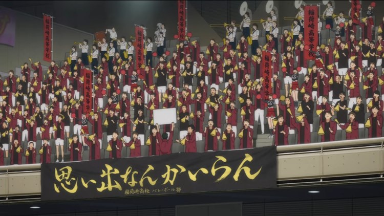 另外每個球隊的橫幅標語也都很有各自的特色,通常代表著該校的球風和願景,擅長空中戰的烏野用「飛吧!」、音駒緊密串連不讓球落地的「維繫」、王者白鳥澤的「獅子奮迅」、伊達工業則是寫上球隊的特色「伊達的鐵壁」,也有像稻荷崎「無須追憶昨日」、鷗台高中「習慣是人的第二天性」這種文青式,不過也有像擅長搞小動作的戶美學園橫幅竟然是「堂堂正正」,也是蠻幽默的。