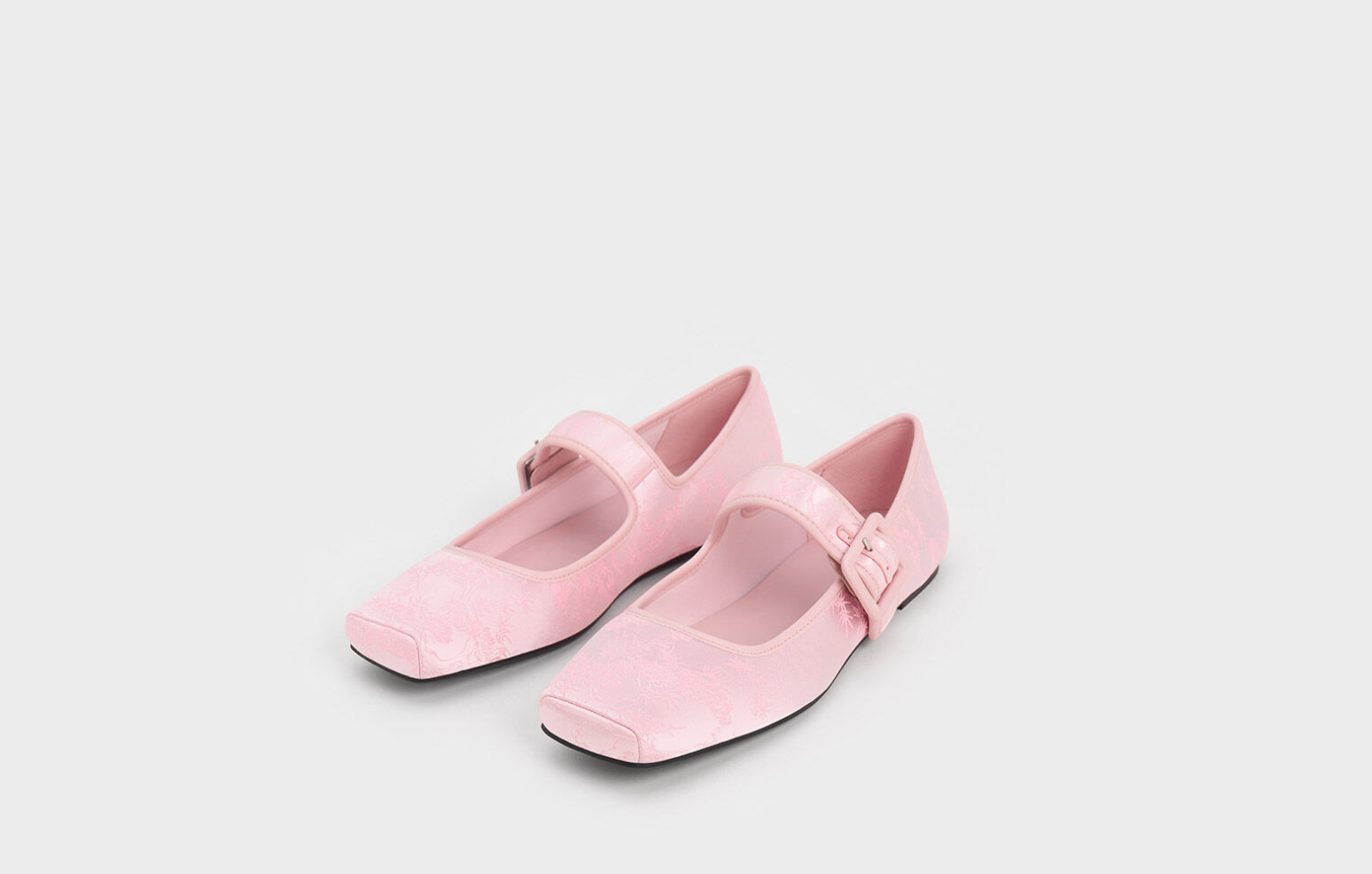 除了前述的有跟瑪麗珍鞋,若傾向無跟或者是不喜歡尖頭的鞋款,就絕不能錯過這款方釦瑪莉珍鞋。平底的方扣瑪莉珍鞋,舒適好走,而方扣點綴著鞋款並搭配新復古美學風的紋路設計,不但低調內斂,卻又讓整體更顯優雅氣質。