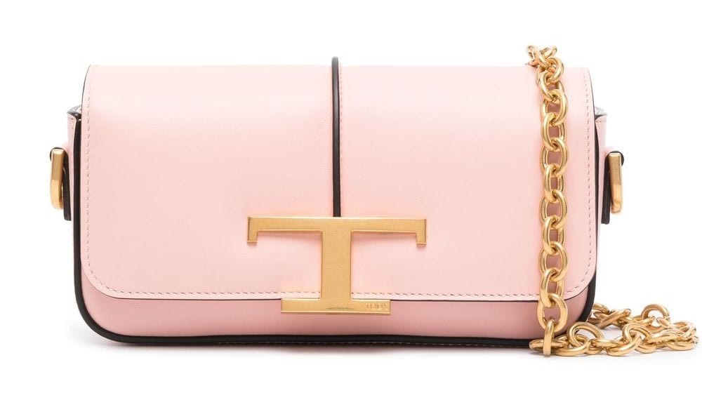 TORY BURCH - 菱格紋皮革翻蓋斜背鍊包 (珊瑚蜜桃色)