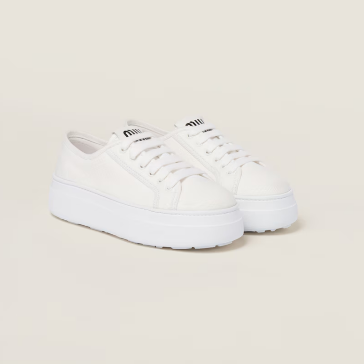 自帶甜美氣質的 Miu Miu,圓潤的線條呈現這雙白色牛仔面料的運動鞋,搭配上類似輪胎底的設計,讓其鞋款多了幾分率性。(商品售價:NTD31,500)
