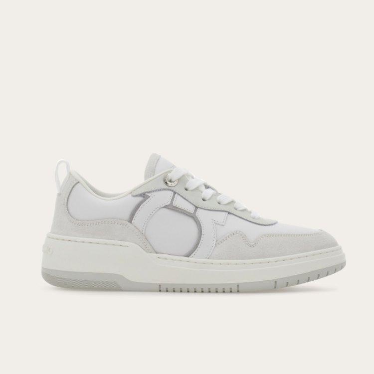 Ferragamo 這雙小白鞋,將品牌最具標誌性的 Gancini logo 藏於鞋側處,整體鞋身則是以復古籃球鞋為主軸,整體街頭感十足的設計,酷女孩一定會愛!(商品售價:NTD31,900)