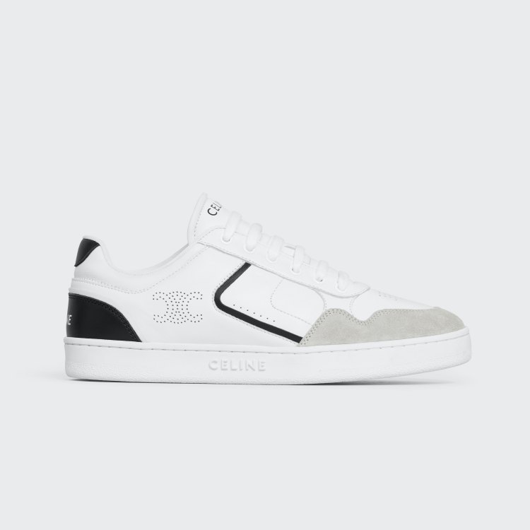 Celine 這雙休閒鞋,以街頭感十足的外型登場!鞋身上以皮革及麂皮的面料拼接,加上 Triomphe logo 的鑿孔細節,讓其鞋款保有品牌識別之餘,還擁有超強搭配性。(商品售價:NTD27,000)