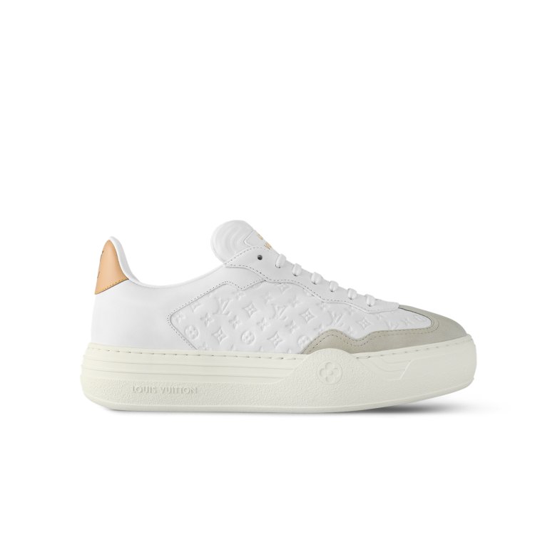 厚底鞋自帶的增高效果總讓人愛不釋手!Louis Vuitton 這雙以壓紋點綴的「Groovy」鞋款,鞋跟處的裸膚粉設計增添幾分甜美的氣息,而鞋頭的麂皮拼接,則讓整體鞋身多了點層次感,加上較高的鞋底,絕對能讓女孩擁有好比例。(商品售價:NTD38,200)
