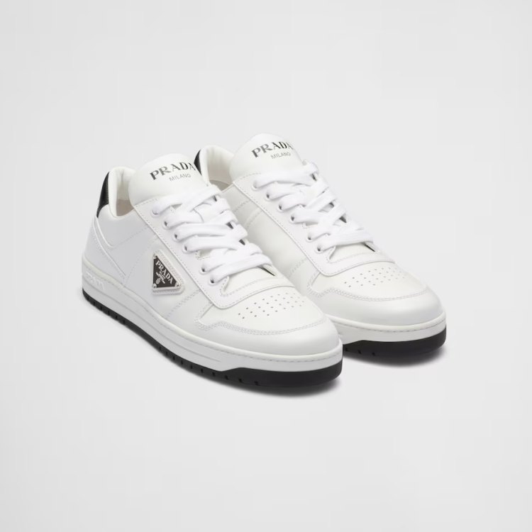 Prada 無疑是近年最搶手的品牌之一!這雙名為「Downtown」的小白鞋,在設計上同樣以籃球鞋為基礎,鞋身標誌性的三角鐵牌,以及鞋舌的品牌字樣,則增添整體的識別度,不過於複雜的設計,在搭配上也超級容易上手。(商品售價:NTD39,500)