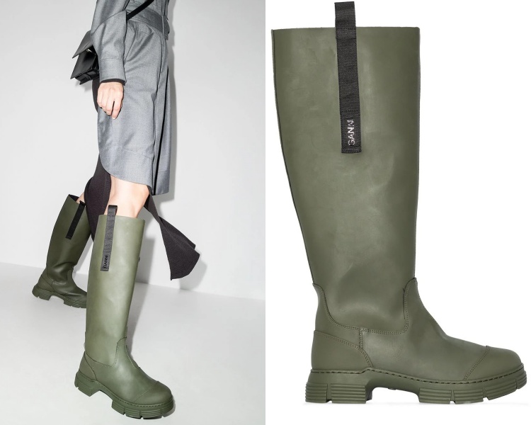 流淌著丹麥哥本哈根血統的小眾設計師品牌 Ganni,跳脫過往對於北歐品牌極簡的印象,以鮮明的塗鴉、豐富的配色,以及帶有童趣的元素作為設計主軸。這雙來自品牌的軍綠色長筒雨靴,不僅時髦也兼具環保永續,靴款本身是以「再生橡膠」為材質,並搭配上凸紋鞋底設計,簡單大方的外型,怎麼搭都好看。