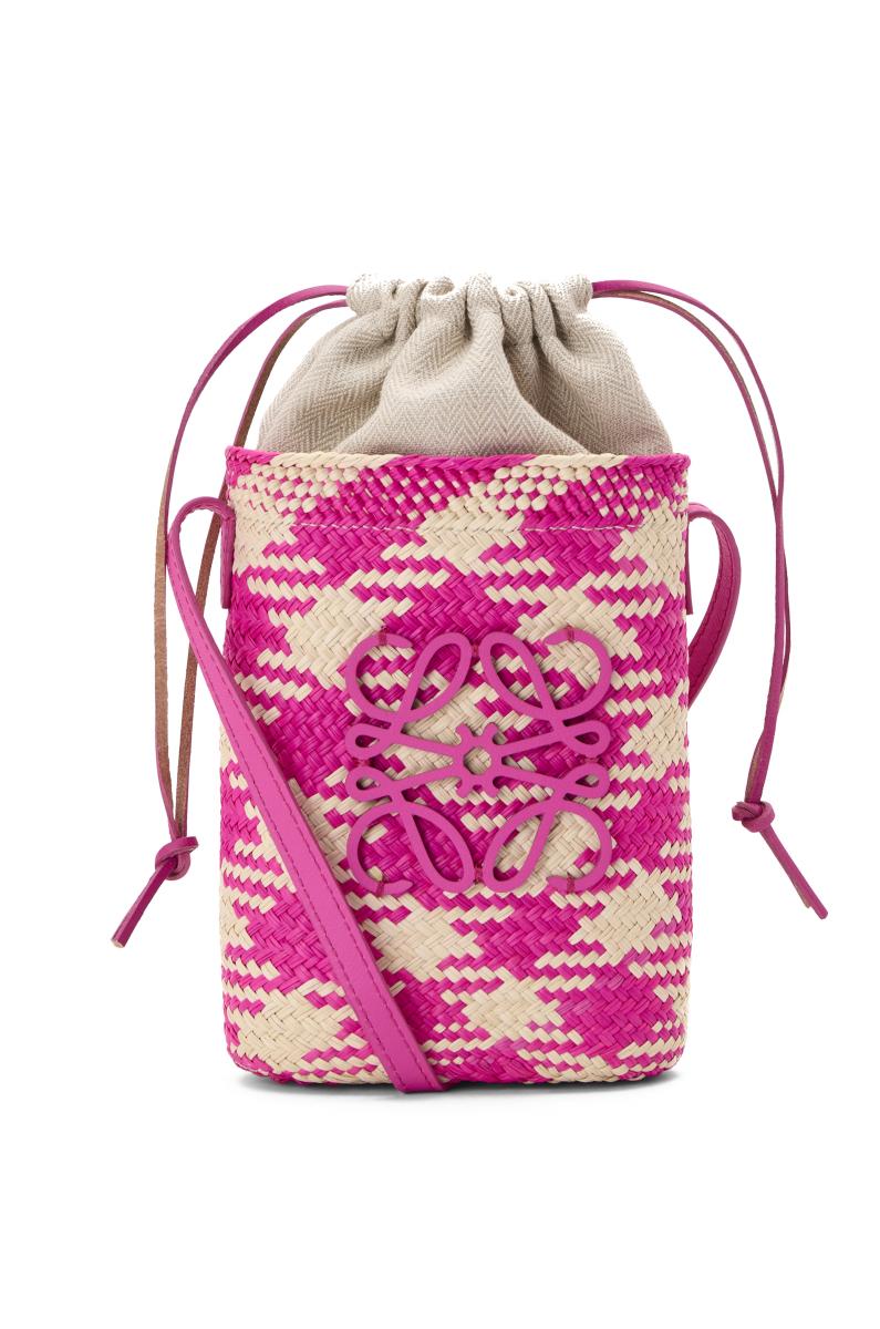 別於前面兩款的簡約素面, 這款水桶包把桃紅、米色雙色融入千鳥格圖案,呈現更加活潑繽紛的視覺風格,而同樣採用桃紅色的Anagram Logo、皮革肩帶和抽繩更滿足了萬千少女心,像把隨身小物通通塞進口袋一樣,不必考慮太多,背上它就能輕鬆出門!