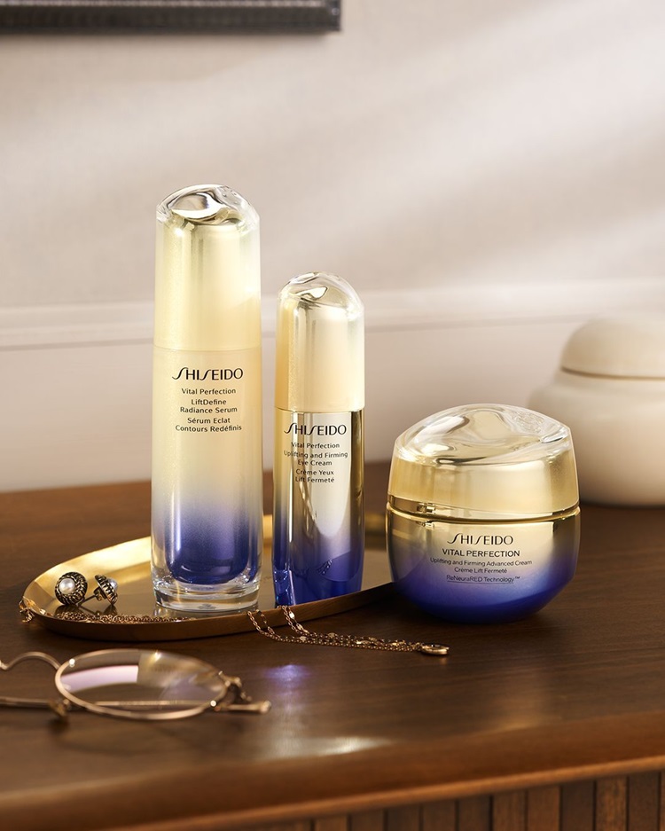 拉提神霜為柯佳嬿維持住猶如20歲般的緊緻童顏,按摩更是她每日工作後放鬆、紓壓的小儀式。除此之外,柯佳嬿也坦言,若要出遠門工作,化妝包裡一定會帶上三項最依賴的養膚寶物!分別為「紅色活酵超導奇蹟露」、「紅妍超導循環肌活露精華液」,以及百優精純乳霜,三步驟紮穩基礎養膚程序。若遇上重要拍攝,則會在最後一步驟搭配拉提神霜加強按摩,便可時刻維持年輕好氣色!