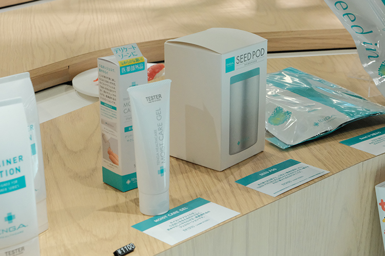 TENGA為成人用品領導品牌,至今已累積賣出上億,不論是在台灣或是日本顯然已成為「飛機杯」的代名詞。而本月進駐表參道最新百貨Harakado,以大人樂園為理念採明亮、溫暖木質設計,放著潮流感十足的DJ音樂,店內以長7公尺迴轉壽司轉盤為主軸,展示旗下品牌產品。有別於台灣的羞澀,TENGA LAND是百貨內人氣很高的駐足點,店內無時無刻聚集著許多潮男、潮女。