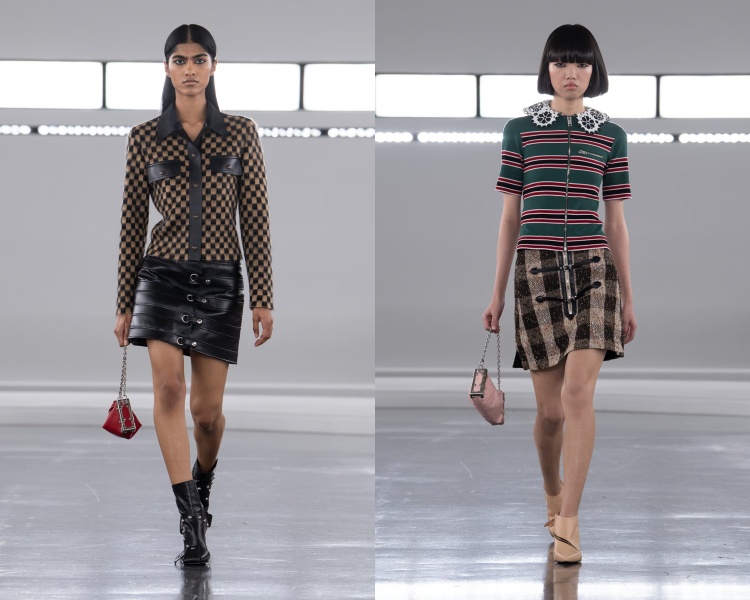 在此次 Voyager Show 目不暇給的設計中,Louis Vuitton 也不忘將其經典的「棋盤格」元素帶回到新系列的服飾中。除了極具品牌識別度的棋盤格外,此次服飾亦加入了每段冒險之旅(Voyage)中皆不可或缺的條紋圖案,像是鮮紅與海軍藍相間的V領上衣、苔蘚綠搭配紅藍長條的拉鍊上衣等。Nicolas Ghesquière 攜手藝術家孫一鈿的獨特設計,讓早秋的時尚充滿無限可能。