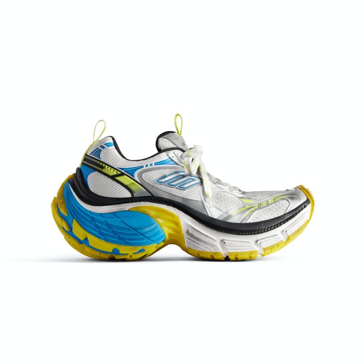 延續運動這個主軸核心,身為掀起老爹鞋風潮的鼻祖,Balenciaga 在大秀上,再次以一雙名為「10XL」鞋款掀起議論,在設計上 Demna 以健身房訓練鞋為原型,並以誇張且不合理外型重新形塑,搭配上多款吸睛的配色,成功的再次抓住許多人的目光。