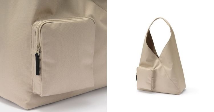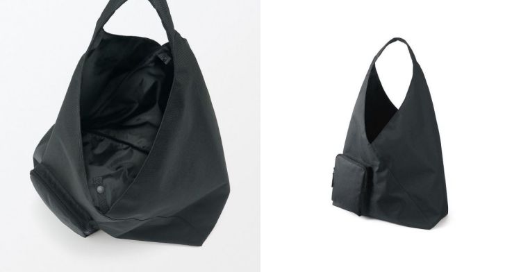 不同於市面上設計的托特大包,MUJI 推出的全新「撥水加工聚酯纖維單肩側背包」,特別在側邊設計一個「口袋」,可以更便利地拿取隨身小物,像是:手機、鑰匙、錢包、卡片,不用從大包包裡翻找,提高使用性。素面的材質面料,承襲品牌極簡的美學,讓整體更顯俐落,有質感。