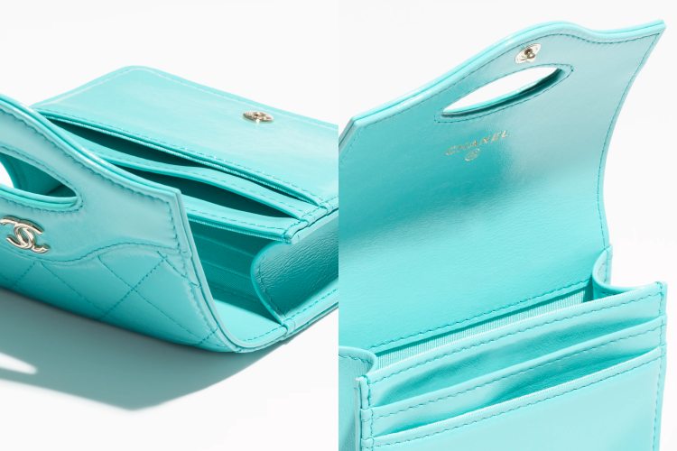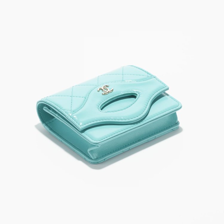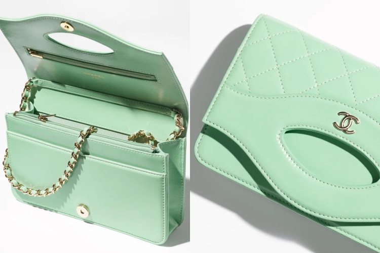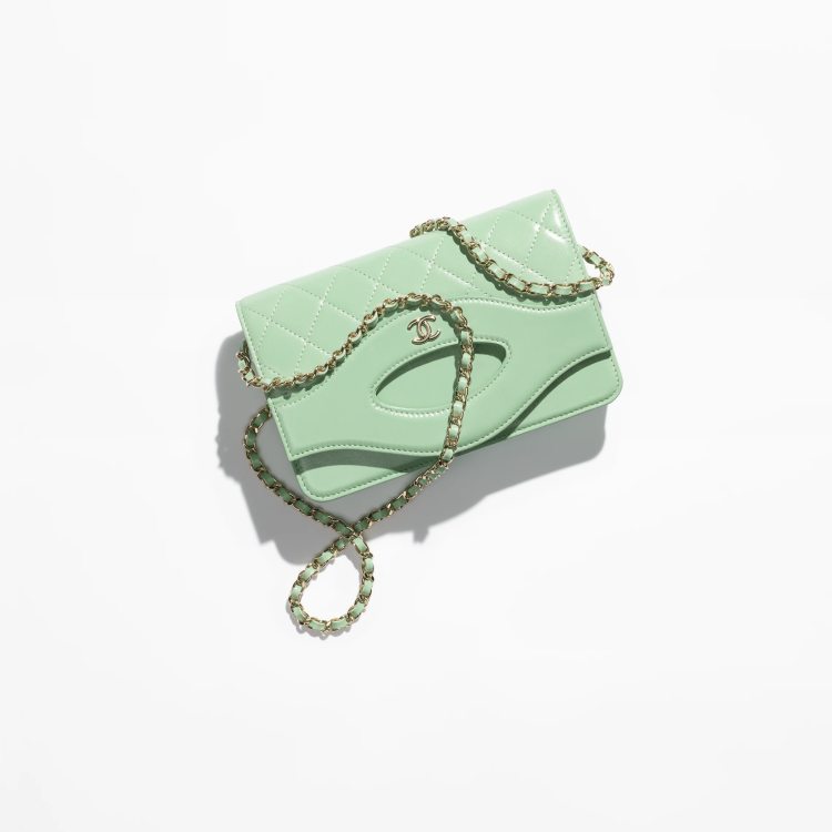 鏈帶皮夾是許多女孩第一次接觸精品的首選!這款薄荷綠的款式,以 31 包的廓形為設計,尺寸為 12 × 19 × 5cm,面料則以細膩的小羊皮呈現,內附拉鍊夾層便於物件收納分類,整體以吸睛配色加上精巧的外型,完全能成為搭配的亮點。(商品售價:NTD122,000)