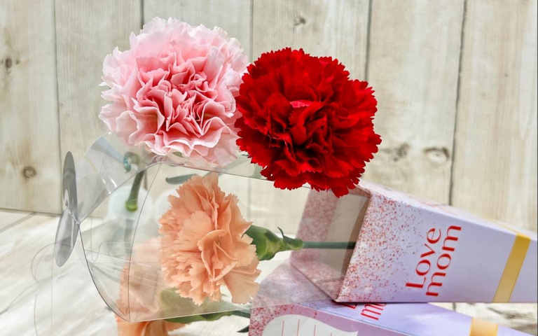 康乃馨被喻為「母親之花」,不僅代表著迷人且優雅的愛,更象徵著愛與關懷,層層花瓣如同綿密的情感,表達出對母親的感恩、思念之情。迎接溫馨母親節到來,統一企業集團以「LOVE MOM!」與您一起對媽媽大聲說愛!串聯統一企業、7-ELEVEN、康是美、統一時代百貨台北店、高雄夢時代、統一佳佳、悠旅生活(星巴克)、CupiCho丘彼巧全球精品巧克力專門店等超過14個品牌,近一萬個實體通路貼心準備逾10萬朵空運哥倫比亞進口康乃馨讓您表達對媽媽的心意。