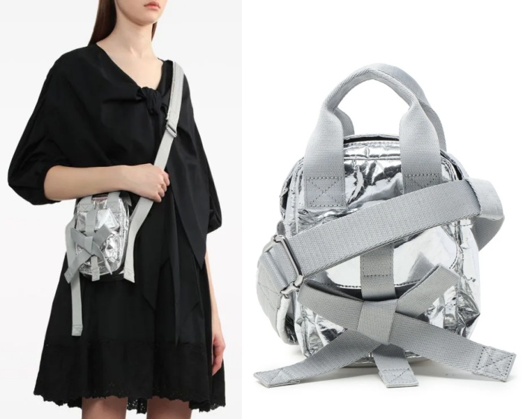 Simone Rocha 的設計總是能喚起女人沉睡已久的「少女心」。這款迷你蝴蝶結經典手袋,將浪漫精神融入斜背包的當代美學之中。包包正面飾有一個巨大綁帶造型蝴蝶結樣式,結合搶眼的銀色金屬包身,讓這款包前衛卻不失甜美氛圍,呈現出搶眼的 Mix & Match 風範。(商品售價:約 NT$17,900元)
