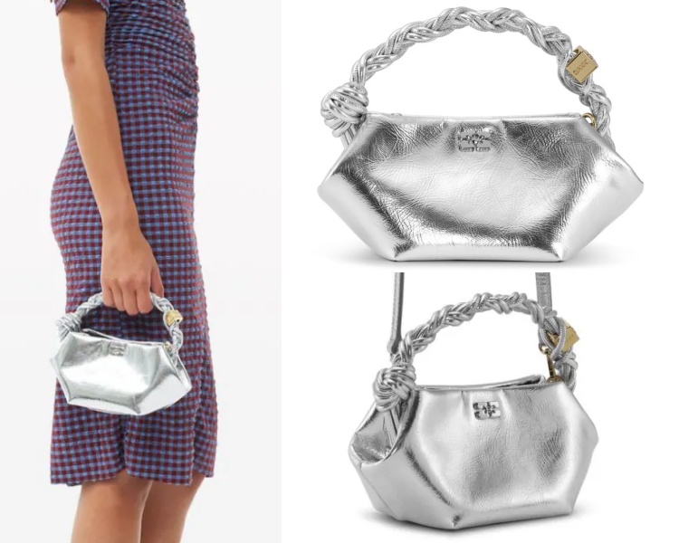發跡於丹麥的設計師品牌 Ganni 於近年迅速崛起,本季新款的這只迷你尺寸 Bou 銀色金屬手袋,擁有令人一看就無法忽視的時髦美感。包包的頂部手柄以多條手工編織線交織固定,搭配上立體的品牌標誌淺金色貴金屬方塊,以及包身正面低調奢華的銀色品牌 Logo 壓紋,讓這款包越看越有趣、越看越令人喜歡!(商品售價:約 NT$13,950元)
