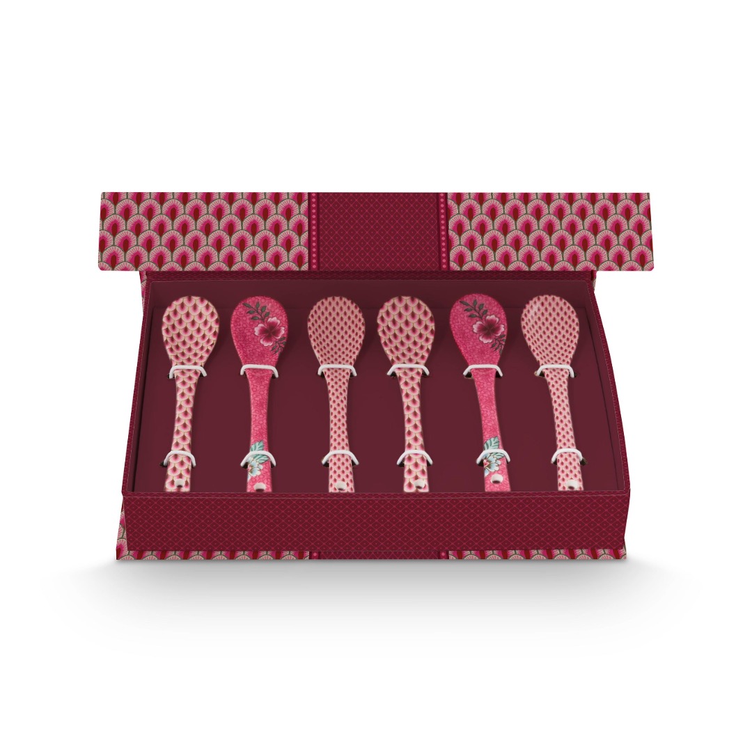 Oriental-Flower Festival 深粉(6入組)茶匙組13cm,NTD$1280。