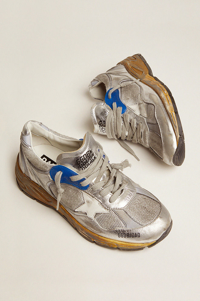 梅雨季最煩的就是會弄髒鞋子,那不如直接把鞋子「弄髒到底」?像是來自父母衣櫥的Vintage單品,仿舊處理為銀色鞋面套上一層復古濾鏡,鞋底、鞋帶留下的磨損泛黃痕跡,令人不禁猜想它曾歷經過哪些冒險——山林、音樂祭或是每一個水窪!(商品售價:NTD$2,980元)
