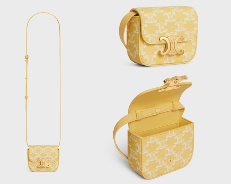 Celine Triomphe 凱旋門造型搭扣手袋,一直都是品牌經典中的經典。尤其這款鮮黃色皮革搭配品牌標誌性老花的迷你 Claude 包,比起常見的黑、白、棕色皮革顯得更加活潑,光顏色就非常適合春夏!搭配上包袋正面的 Triomphe 搭扣,無論斜揹、手提,或將肩帶拆除當成手拿包、繫在皮帶上當成腰包,都非常時髦有型。(商品售價約 NT$43,600元)