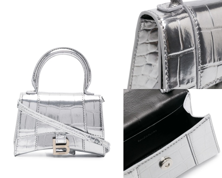是時候更新你的「小廢包」收藏了!這款來自 Balenciaga 的迷你 Hourglass 手提包,一直都是品牌的經典品項,銀色小牛皮的色系剛好符合今年潮流,搭配上包身的鱷魚紋壓印及「B字」搭扣徽標,揹在身上搶眼吸睛,絕對會成為你今年春夏出鏡率最高的搭配單品之一。(商品售價 NT$86,900元)
