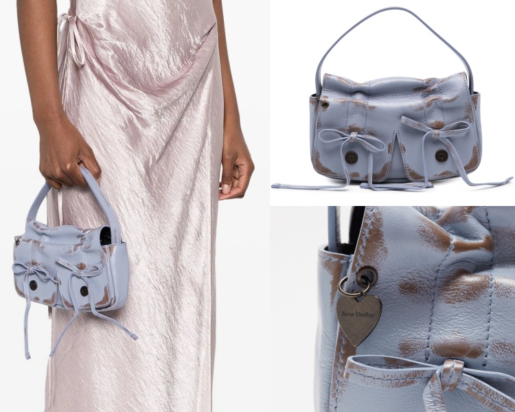 對於千禧世代的復古風格迷戀不已嗎?那麼 Acne Studios 的這款蝴蝶結綁帶造型多口袋(Multipocket)迷你手袋,絕對會成為你今年新歡!淺紫色的小牛皮包身,搭配上仿舊效果的棕色刷染,讓這只手袋擁有獨特少見的色澤及外觀。古銅色的愛心品牌徽標吊牌,更讓這只迷你小包,增添了一分自由不羈的 Y2K 精神。(商品售價 NT$35,000元)