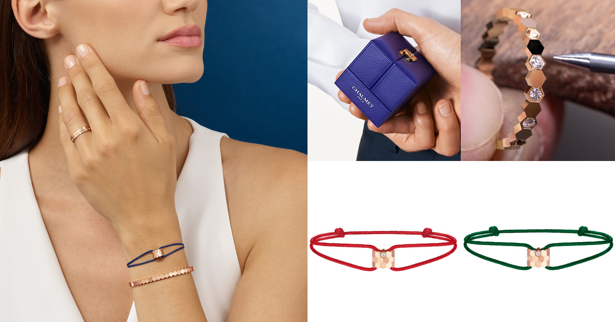 於今年年中,Chaumet又再度為此標誌性的「Bee My Love」珠寶推出更加適合日常配戴的絲繩手環新款!為響應環保意識,絲繩材質採用的是可再生技術所製成;並為了便於個人穿搭風格,還貼心地提供多達7款顏色供選擇,而且重點是!相較於全K金材質的10幾萬而言,同樣只需花4萬出頭既可入手同系列,卻也更加親民等級的設計新款。