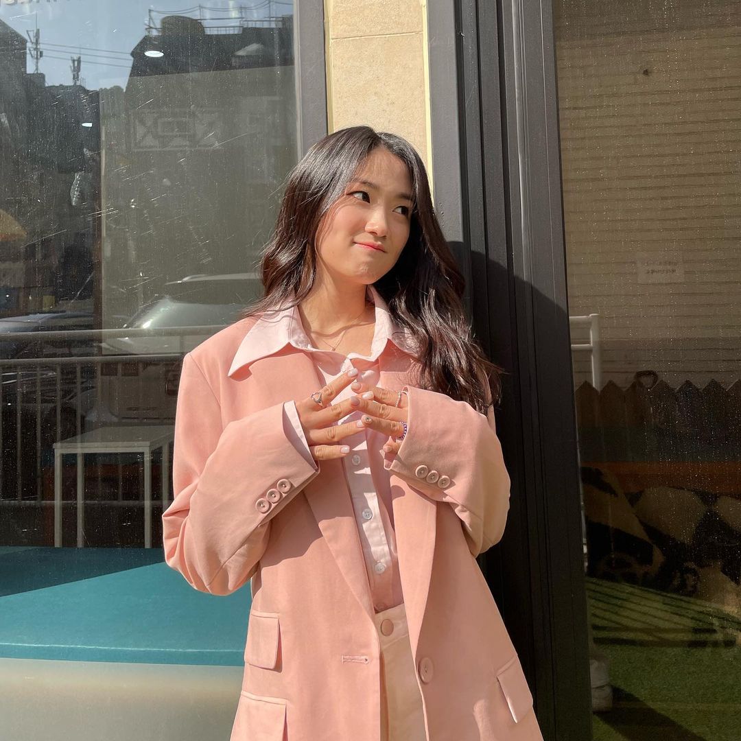 單一色系也是「多巴胺穿搭」的技巧之一,別以為整身同樣顏色就很簡單,其實更考驗妳的選品功力!很懂如何駕馭亮色的金惠奫,這回選擇嫩粉色調帶出溫柔氣質,不過在單品款式上特別選擇率性的套裝風格,並運用不同明度創造深淺對比,像是珊瑚粉西裝外套既活潑又不失沉穩,粉色襯衫和西裝褲則以輕盈淺粉作為搭配,隨著大翻領設計疊搭出不同層次,可說是細節十足!