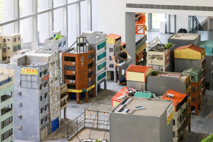 此次展出最大的亮點之一,莫過於藝術家張立人打造的 1:12 量體模型,融入台灣建築特色,像是道路招牌、街道輪廓,以及日常元素,包括:磁磚、行人道、頂樓加蓋、鐵捲門、高架橋等,都真實的呈現出來,如同走進小人國世界,但眼前的景象,卻是我們日常中早已「習以為常」的事物。