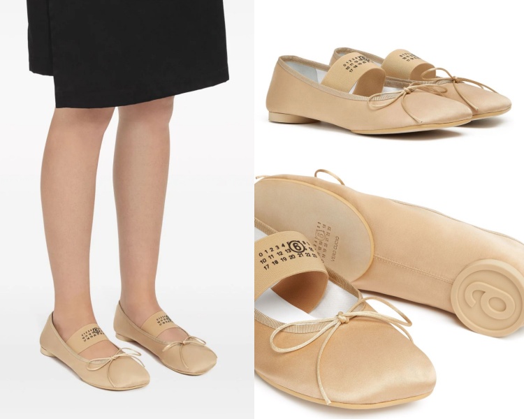 MM6 Maison Margiela 的芭蕾舞娃娃鞋,一直都是社群上風靡萬千的夢幻鞋履,粉膚色緞面的設計,搭配品牌經典的數字徽標圖樣,以及模仿真實芭蕾舞鞋設計的方形鞋頭、腳背鬆緊帶、蝴蝶結綁帶等細節,讓這雙鞋充滿青春活潑的少女氛圍,誰穿誰時髦!(商品售價約 NT$ 17,400元)