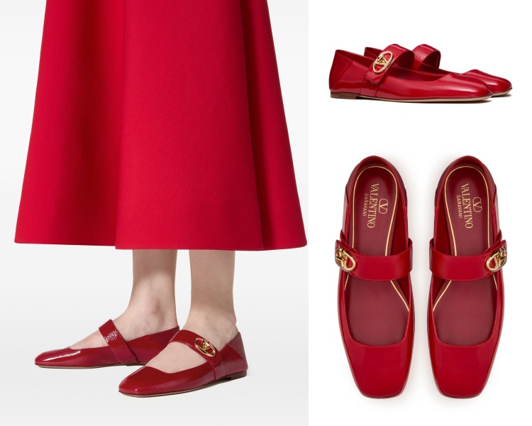 本季必備的「紅色」悄悄化作精緻典雅的「娃娃鞋」了!這雙來自 Valentino 的 VLogo Locker 瑪麗珍芭蕾舞鞋,以紅色的小牛皮及小羊皮製作,窄邊方頭的鞋型,搭配側邊固定的皮革繫帶及品牌標誌性的金色 V Logo,穿在腳上不僅顯白更為氣質加分!(商品售價 NT$ 36,400元)